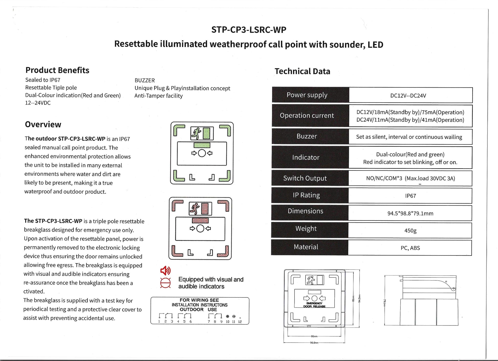 STP-CP3-LSRC-WP - Weatherproof triple pole break glass